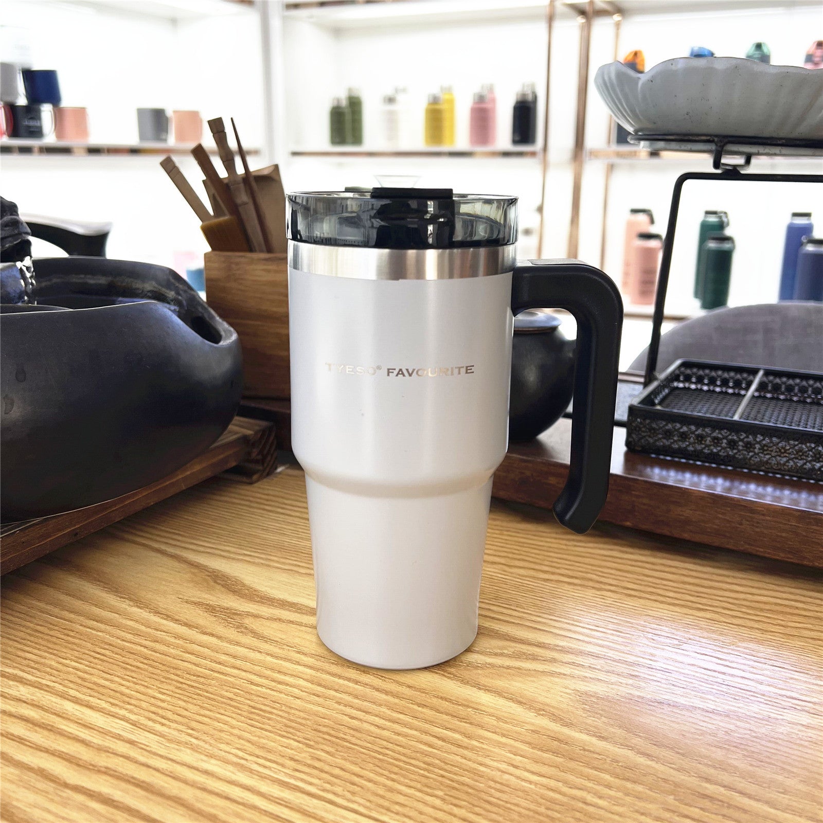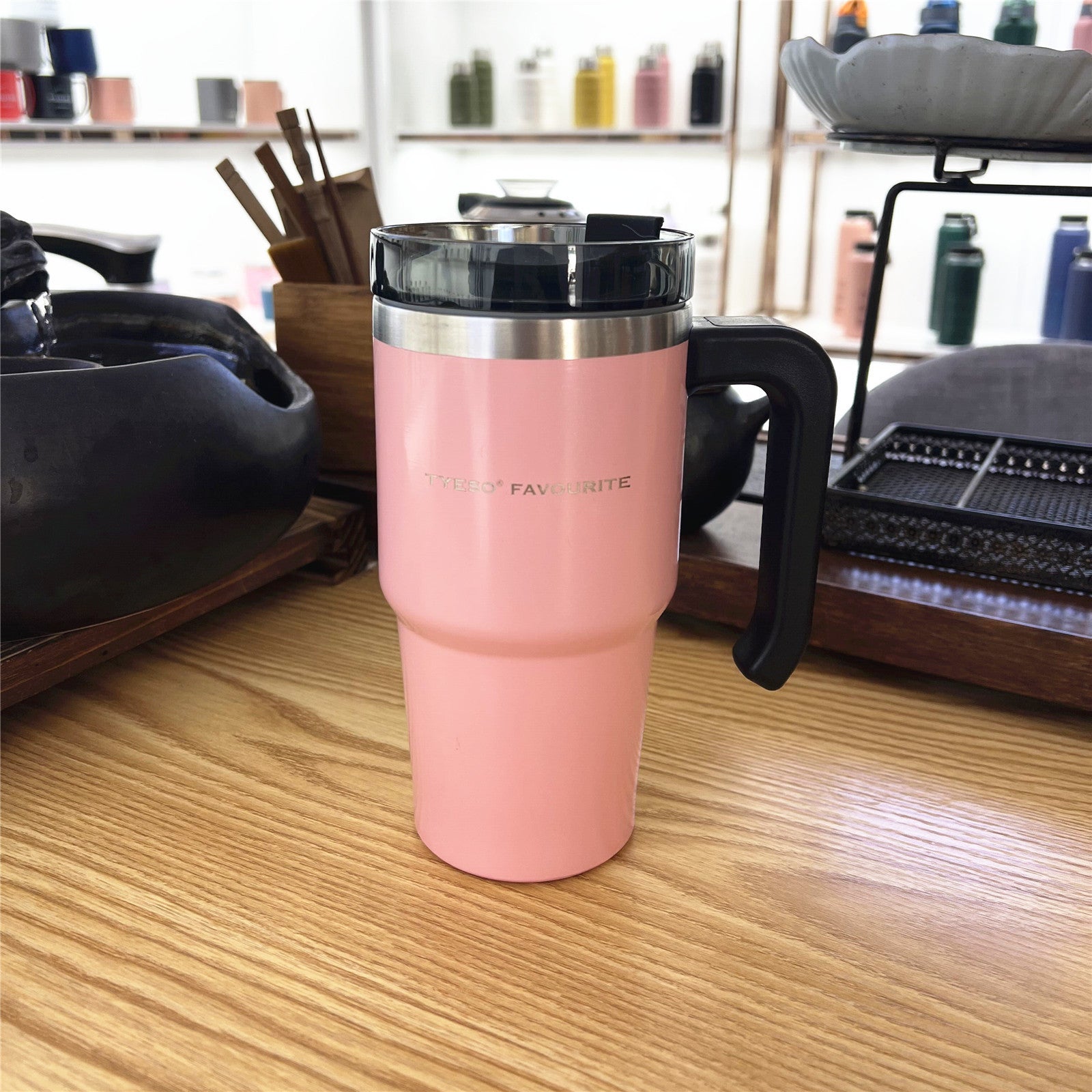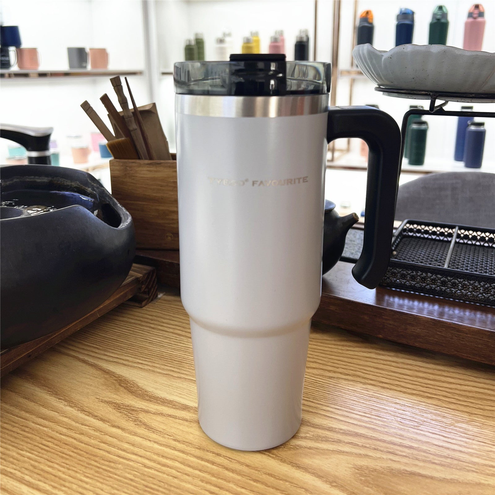 Style: with handle, pot belly cup, with straw
