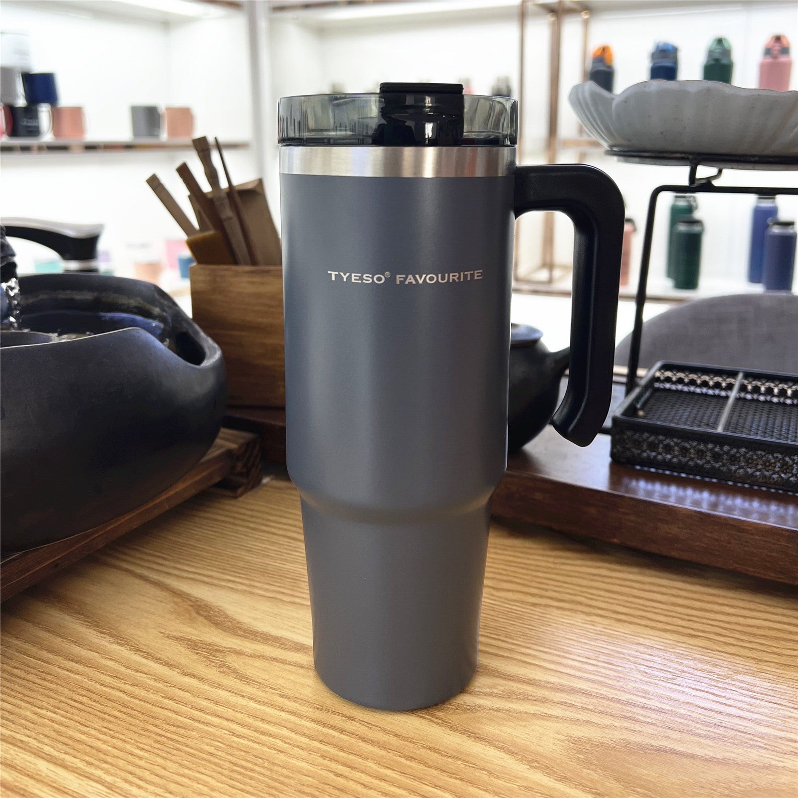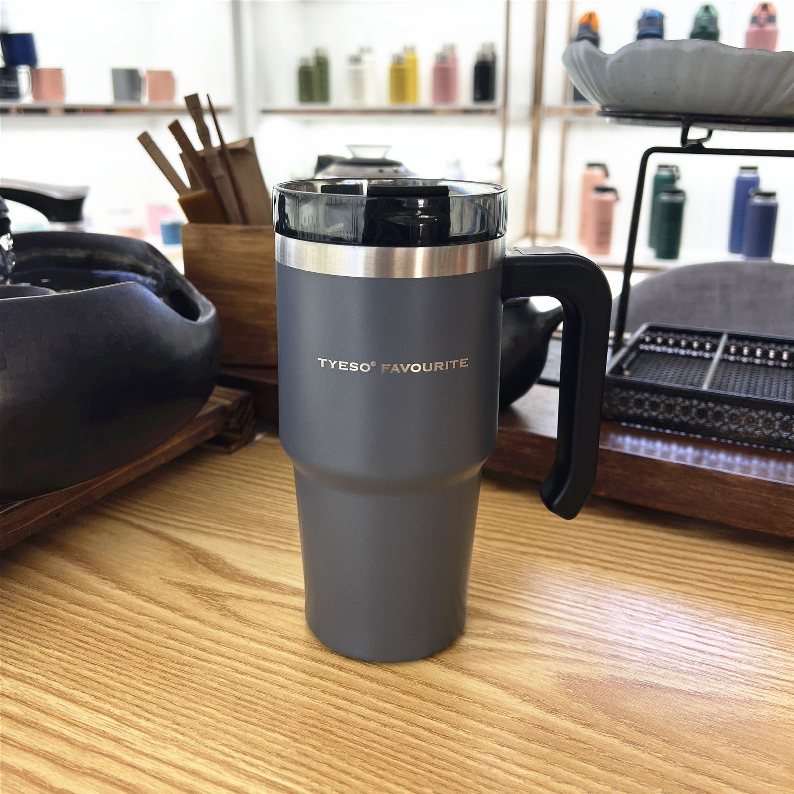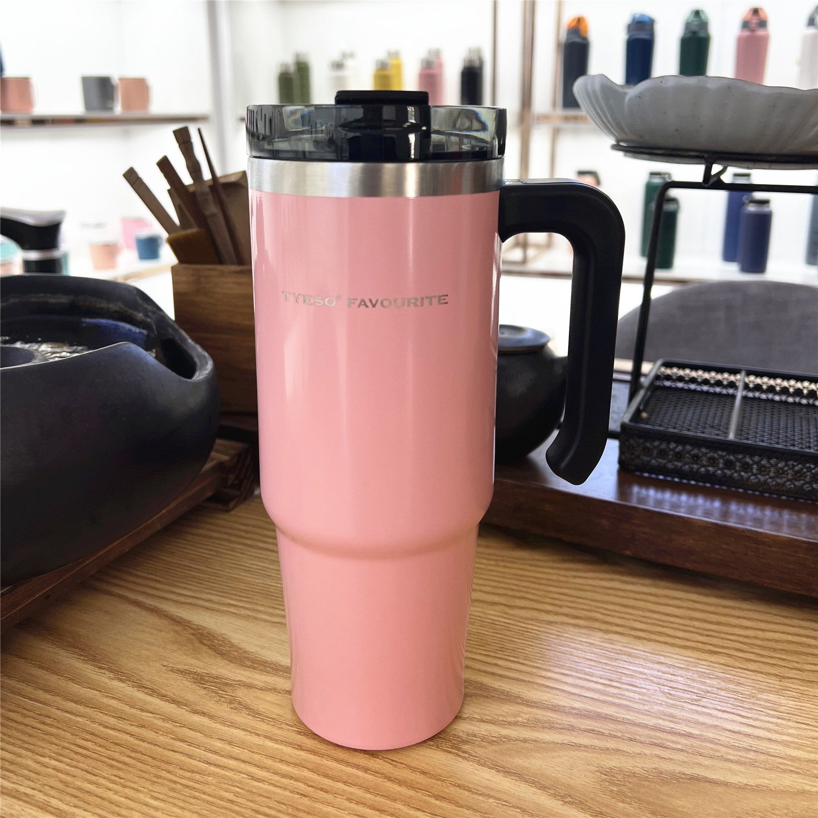 Style: with handle, pot belly cup, with straw