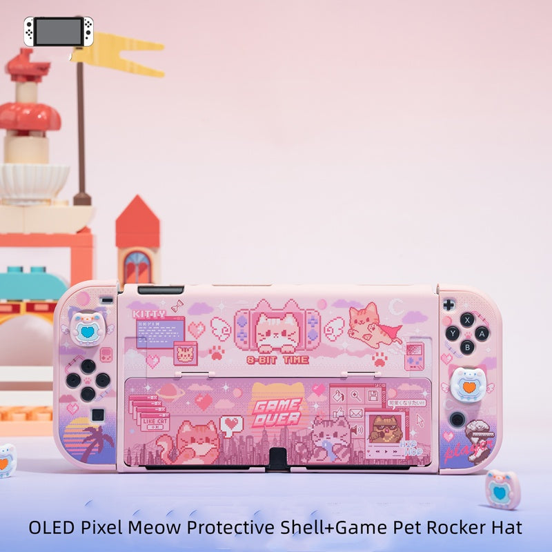 2 styles: oled pixel meow protective case+game pet joystick cap